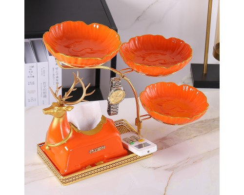 橙釉橙盤五格果盤紙巾盒 (NT1,564)