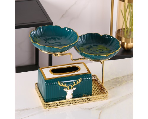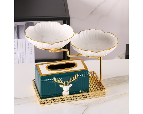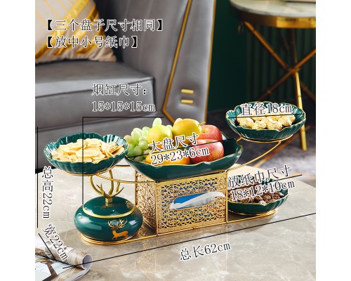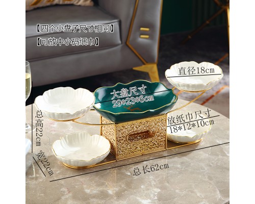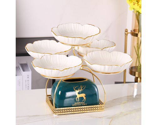 綠釉白盤五格果盤紙巾盒 (NT1,564)