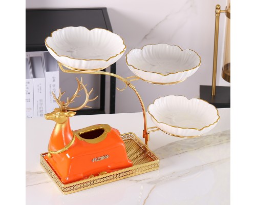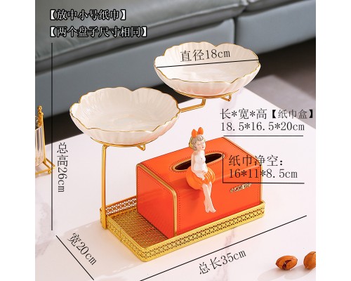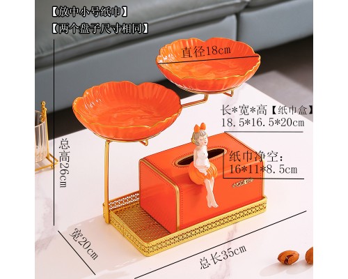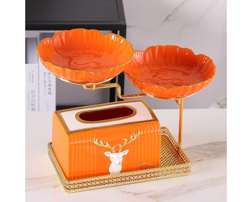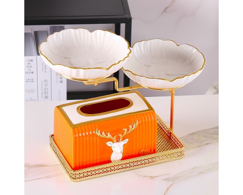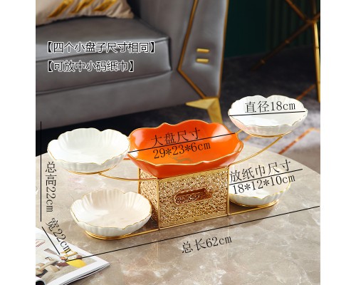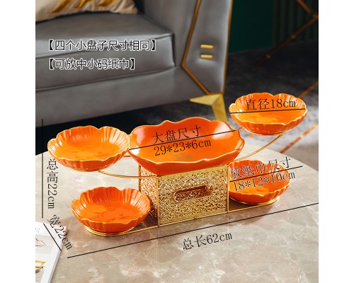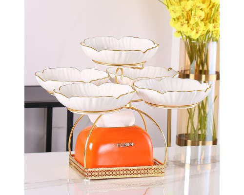 橙釉白盤五格果盤紙巾盒 (NT1,564)