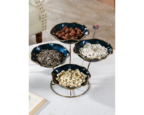 銀色 綠釉白盤三格干果盤 (NT1,404)