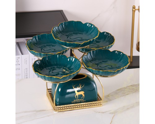 綠釉綠盤五格果盤紙巾盒 (NT1,564)