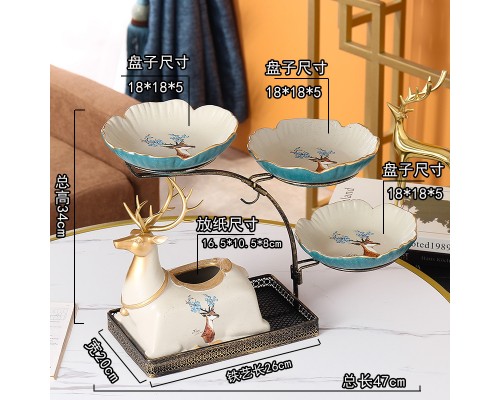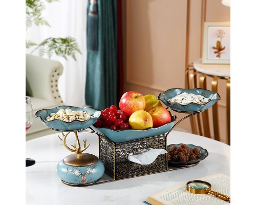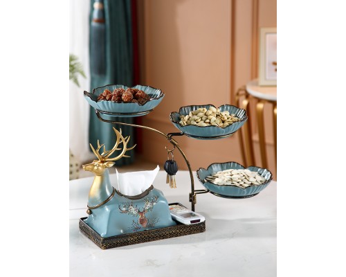 淺藍色三格干果盤紙巾盒 (NT1,324)