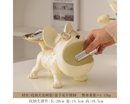 進門入戶玄關卡通法斗犬收納托盤放鑰匙置物架客廳桌面裝飾品擺件