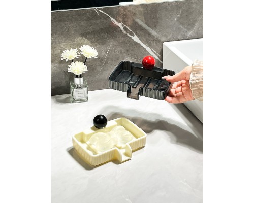 奶白色皂盒+黑圓球