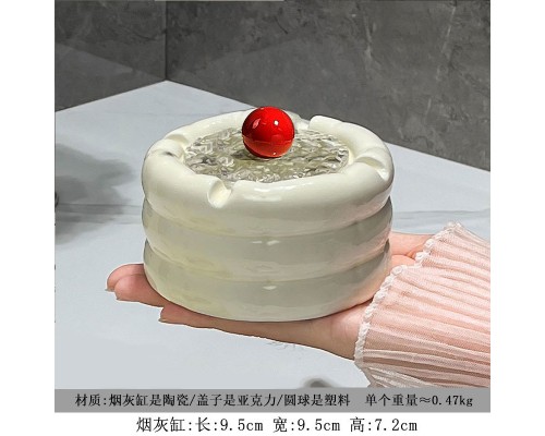 可愛奶油白煙灰缸+紅圓蓋 (NT269)
