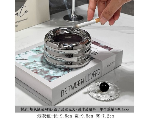 可愛輕奢銀煙灰缸+黑圓蓋 (NT336)
