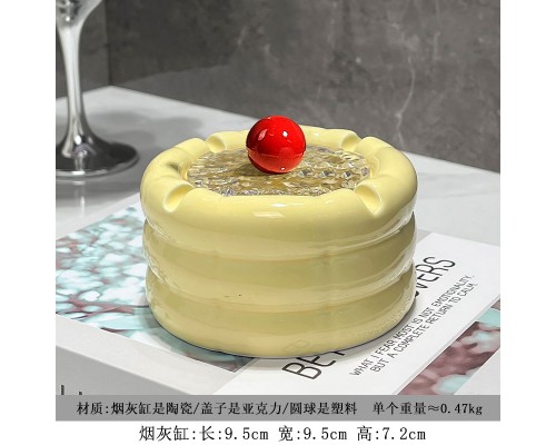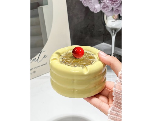 可愛奶油黃煙灰缸+紅圓蓋 (NT279)