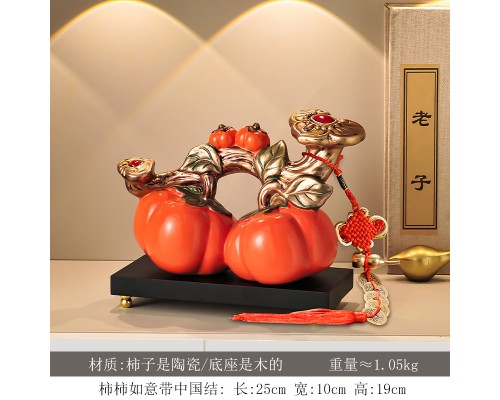 中式家居裝飾事事如意柿子擺件客廳玄關酒柜工藝品搬新家喬遷禮物