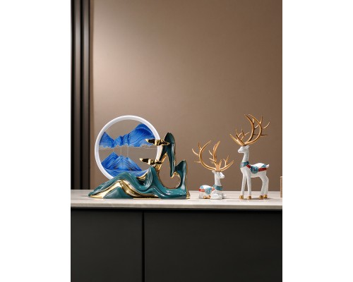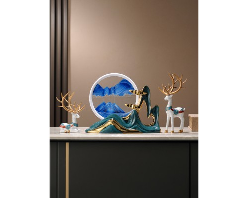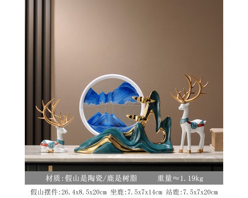 綠色山水流沙畫+小號財福鹿 (NT1,123)