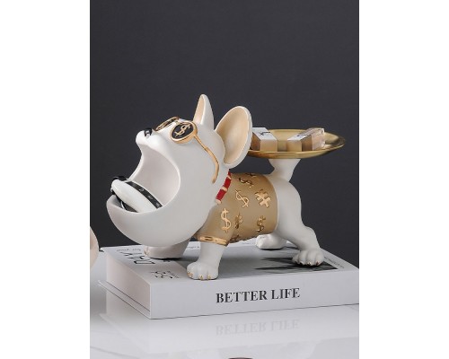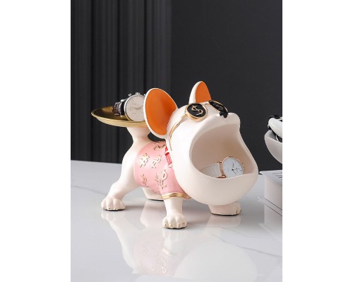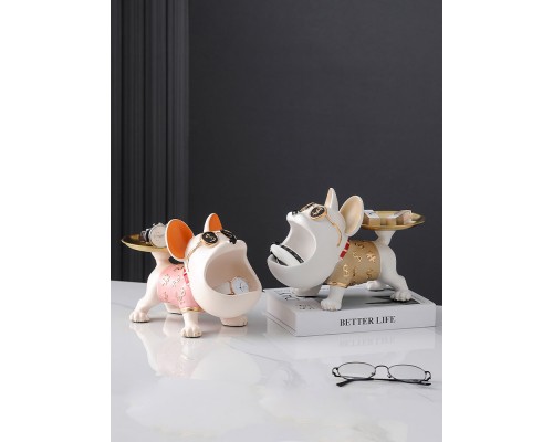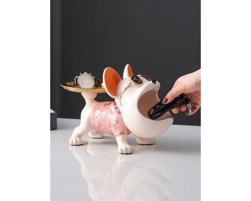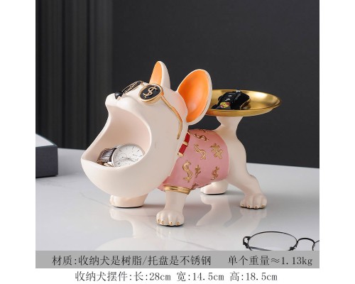 進門入戶收納托盤放鑰匙擺件玄關置物架門口鞋柜可愛法斗犬狗裝飾