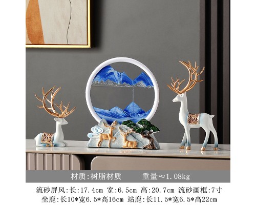 中式沙漏流沙畫鹿山景擺件家居飾品電視柜客廳酒柜玄關辦公室擺設