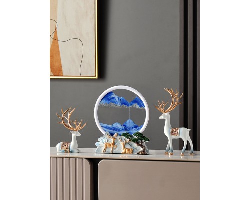 福鹿山景流沙畫+漸變藍鹿一對 (NT1,028)