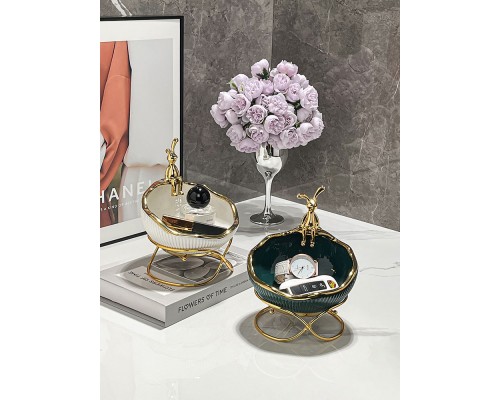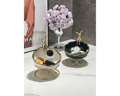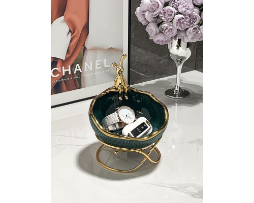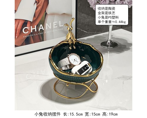 金兔陶瓷綠描金收納帶架 (NT507)