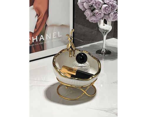 金兔陶瓷白描金收納帶架 (NT497)