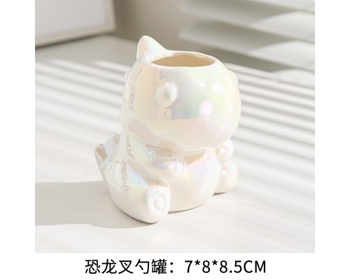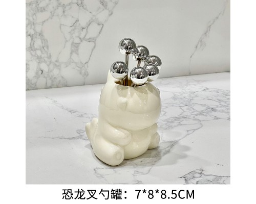 【炫彩白】恐龍叉子筒+6叉 (NT337)