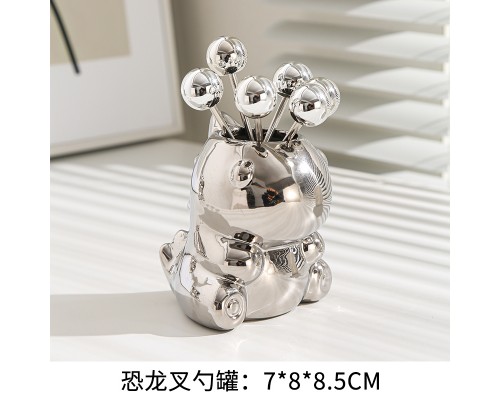 【高級銀】恐龍叉子筒+6叉 (NT337)