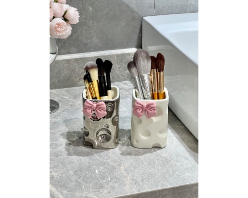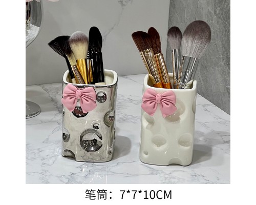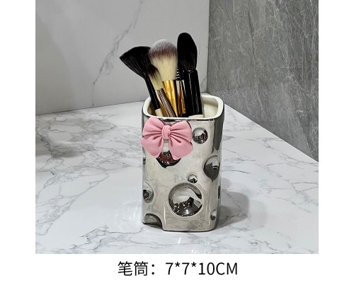 【銀色+蝴蝶結】奶酪筆筒 (NT318)