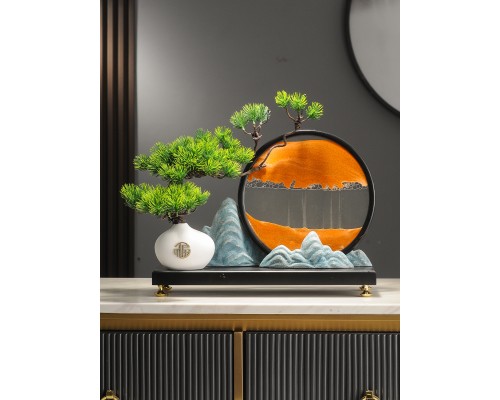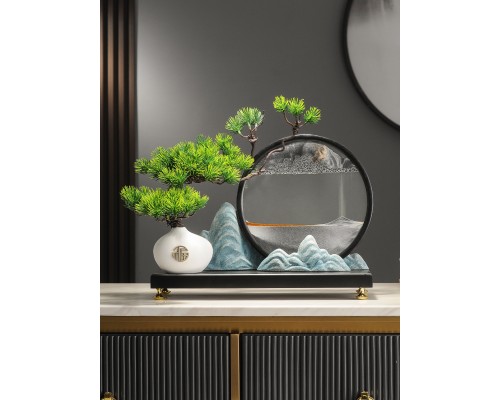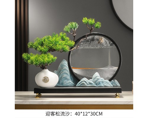 迎客松流沙畫擺件新中式國風客廳玄關辦公室輕奢高檔茶室裝飾品