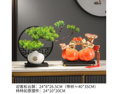 【青云直上】迎客松云屏+柿柿如意擺件 (NT1,364)
