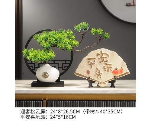 【青云直上】迎客松云屏+平安喜樂扇 (NT1,020)