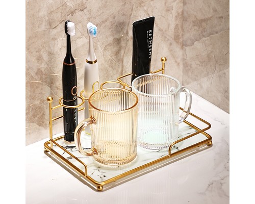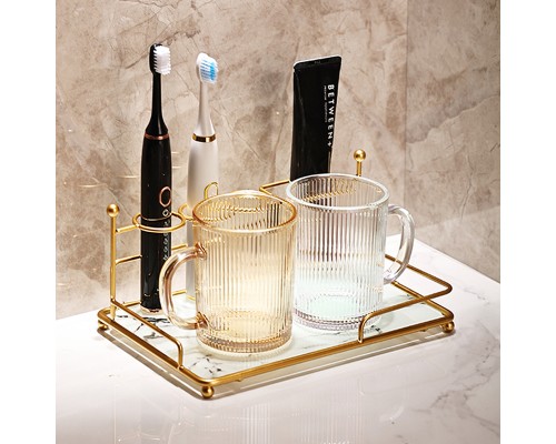 石紋-牙刷置物架+2杯【琥珀+透明】 (NT574)