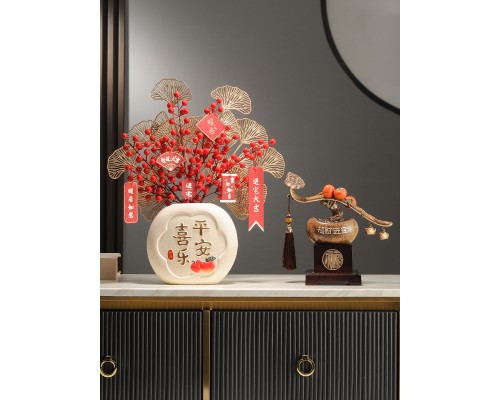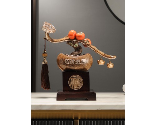 新中式招財納福柿柿如意擺件玄關酒柜客廳辦公室喬遷搬家新居禮品