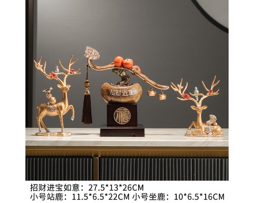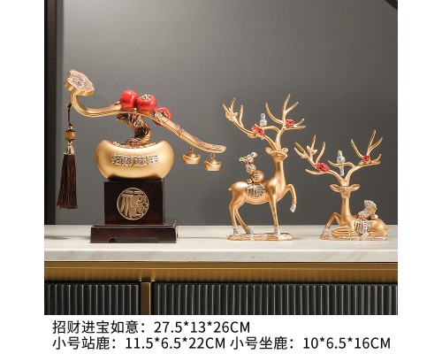 【金色-底座】招財進寶如意+小鹿一對 (NT1,933)