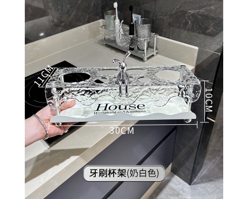 【奶白 金屬盤】牙刷架+(煙灰+炫彩) (NT574)