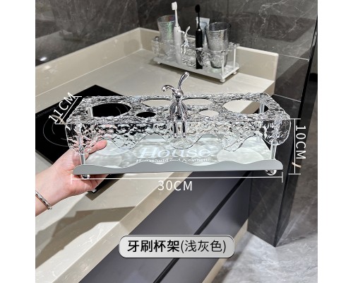 【淺灰 金屬盤】牙刷架+(煙灰+炫彩) (NT574)