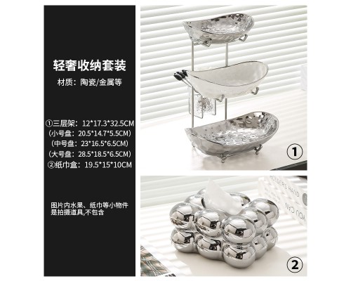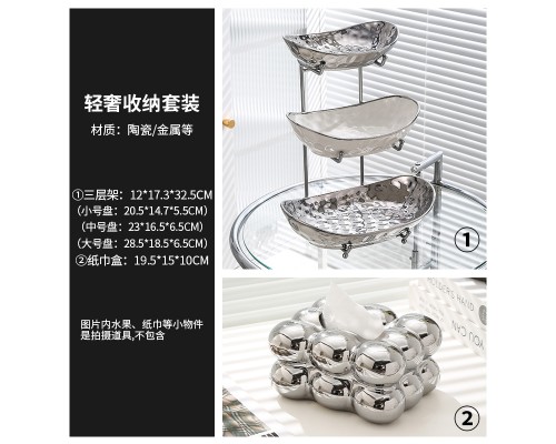 【高級銀】元寶三層盤+紙巾盒 (NT1,601)