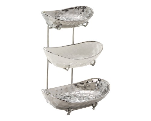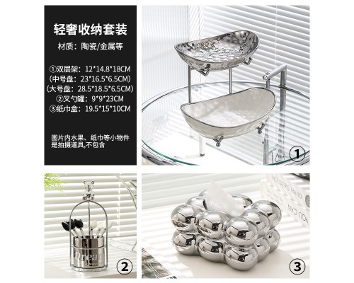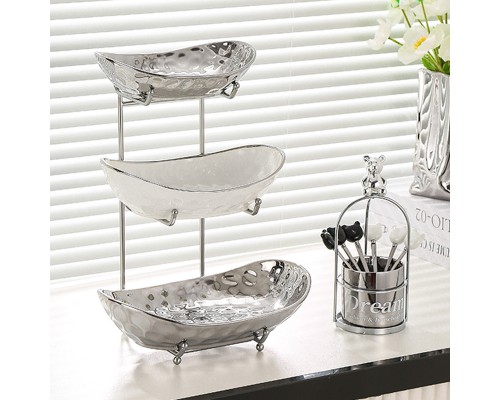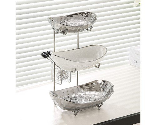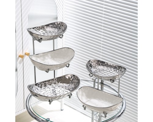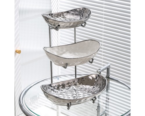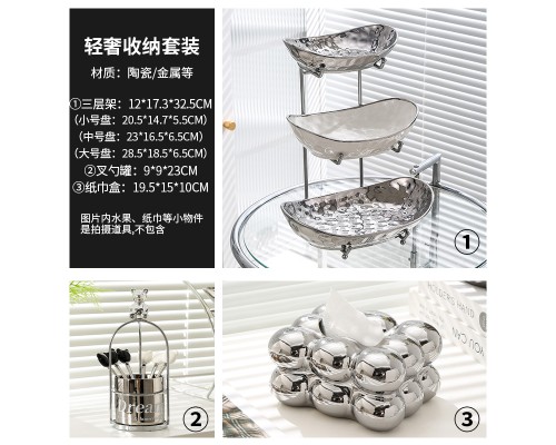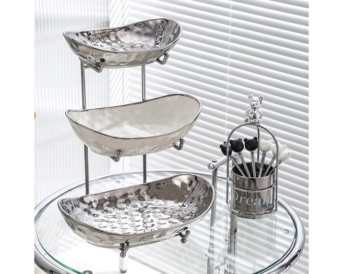 【高級銀】元寶三層盤+紙巾盒+6叉小熊架 (NT1,791)