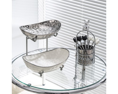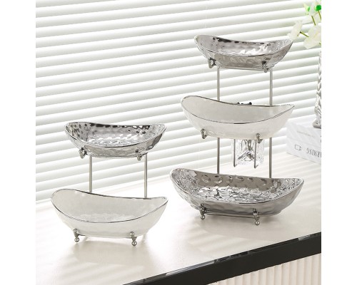 【高級銀】元寶兩層盤+紙巾盒+6叉小熊架 (NT1,420)