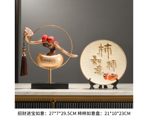 【復古-金環】招財進寶如意+柿柿如意盤 (NT1,591)