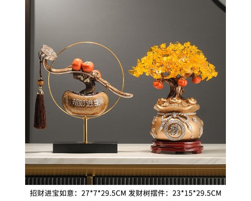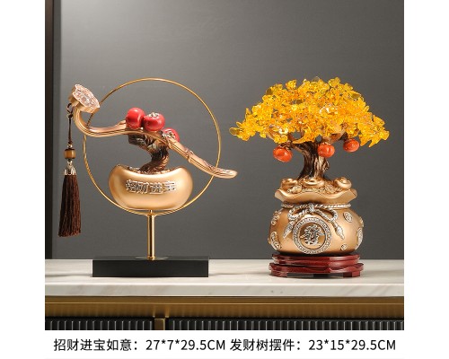 【復古-金環】招財進寶如意+金色發財樹(底座) (NT2,437)