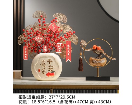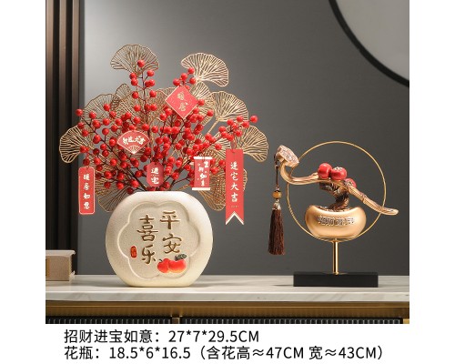 【復古-金環】招財進寶如意+平安喜樂花瓶 (NT1,780)
