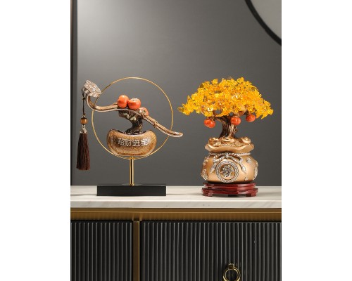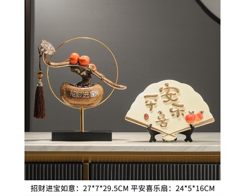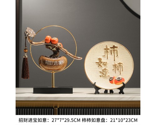 招財納福柿柿如意擺件新中式客廳辦公室酒柜輕奢喬遷搬家新居禮品