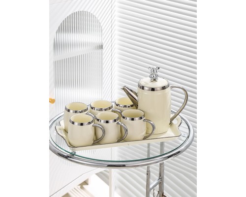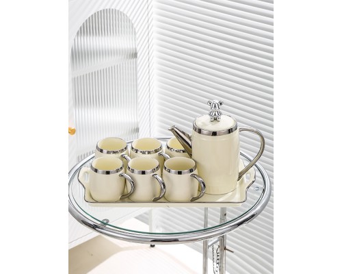 【白色】鼓形6杯1壺1托(禮盒) (NT2,266)
