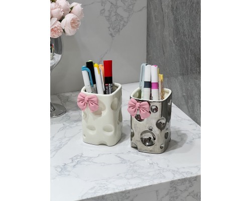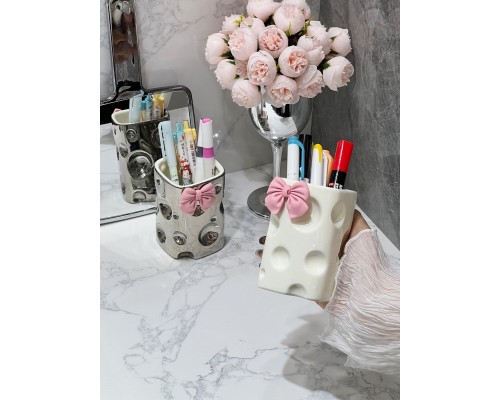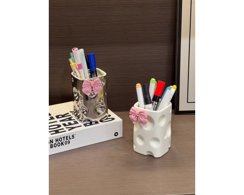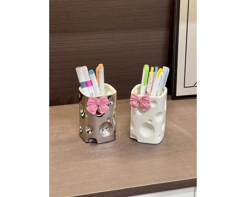【銀色+蝴蝶結】奶酪筆筒 (NT318)