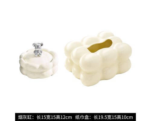 【奶黃】球球紙巾盒+煙灰缸 (NT935)