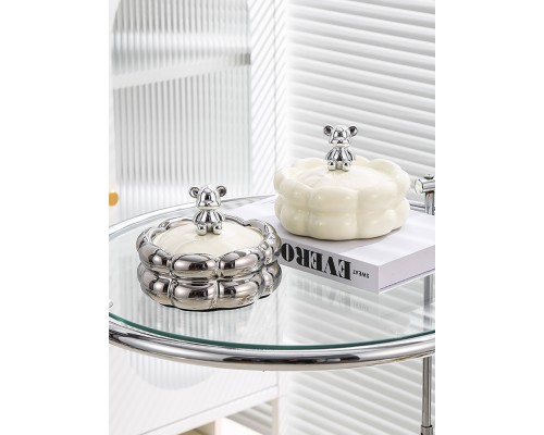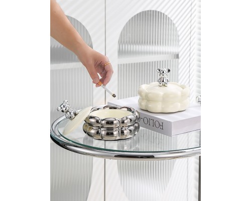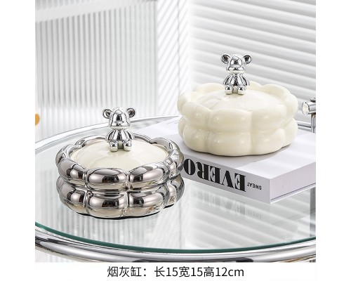 【銀色+奶黃 帶蓋】球球煙灰缸 (NT906)