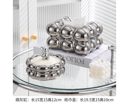 【銀色】球球紙巾盒+煙灰缸 (NT983)