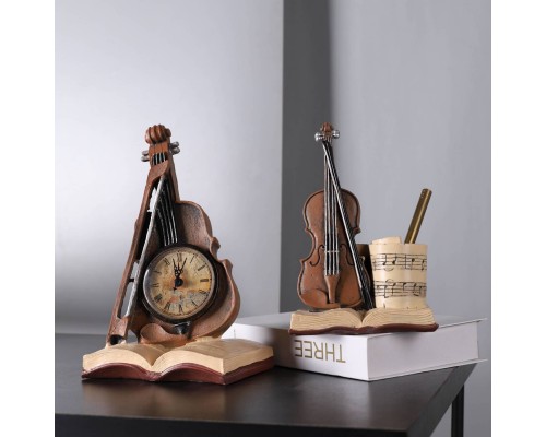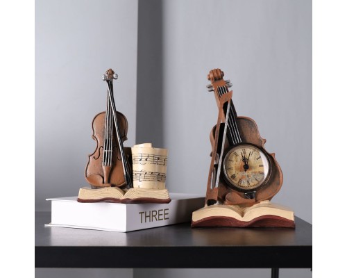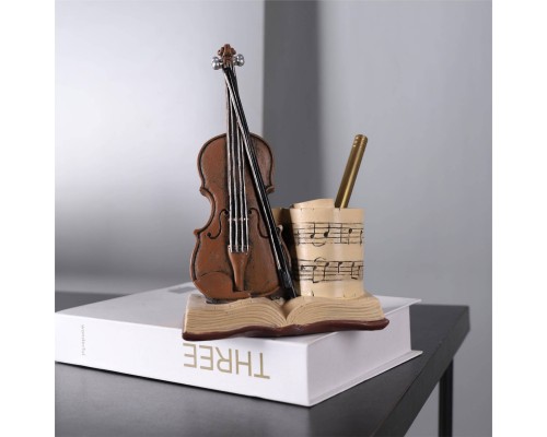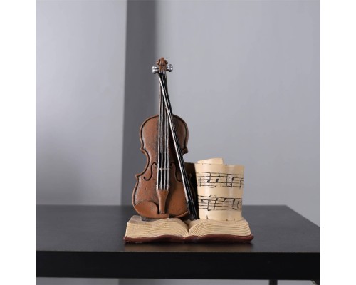 復古小提琴擺件創意筆筒書桌個性筆筒書房辦公室書柜酒柜裝飾品