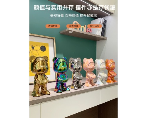 創意網紅衛衣熊存錢罐電鍍陶瓷擺件客廳輕奢酒柜家居電視柜裝飾品