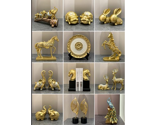 金色雙鹿擺件【含水晶球】 (NT1,063)