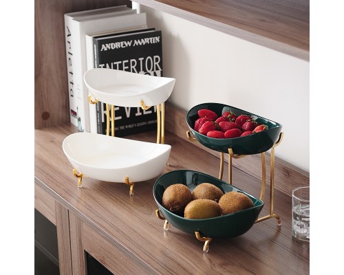 北歐輕奢網紅雙層水果盆客廳陶瓷果盤創意多層家用茶幾個性水果盤