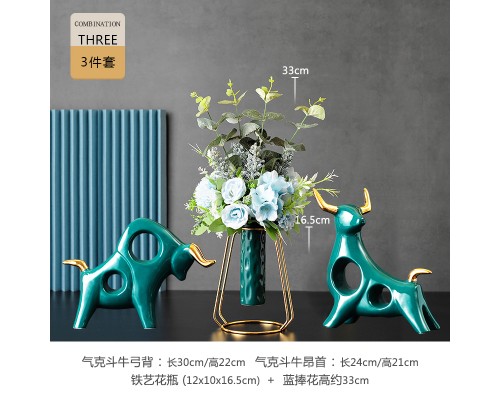 牛氣沖天+鐵藝花瓶·藍 (NT4,020)