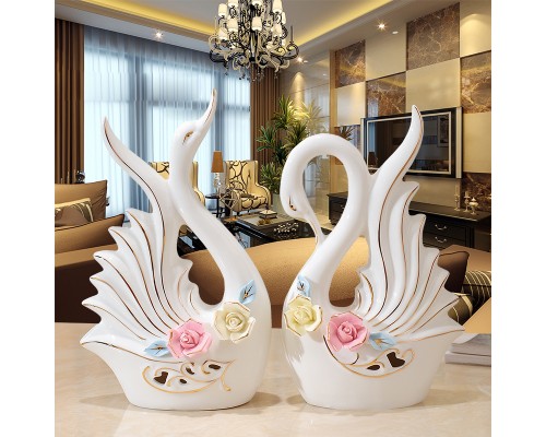 創意小天鵝陶瓷家居室內軟裝擺設客廳裝飾工藝品酒柜擺件結婚禮物
