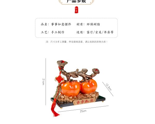 客廳玄關輕奢高端大氣事事稱心如意柿子喬遷電視柜酒柜裝飾檔擺件