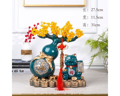 葫蘆招財貓(藍色燙金花) (NT1,342)