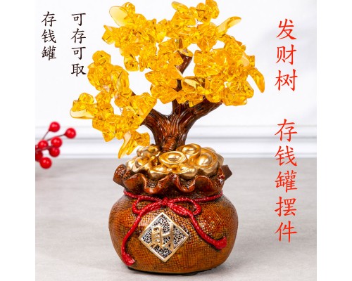 創意客廳電視柜酒柜大號招財水晶發財搖錢樹存錢罐開業喬遷擺件